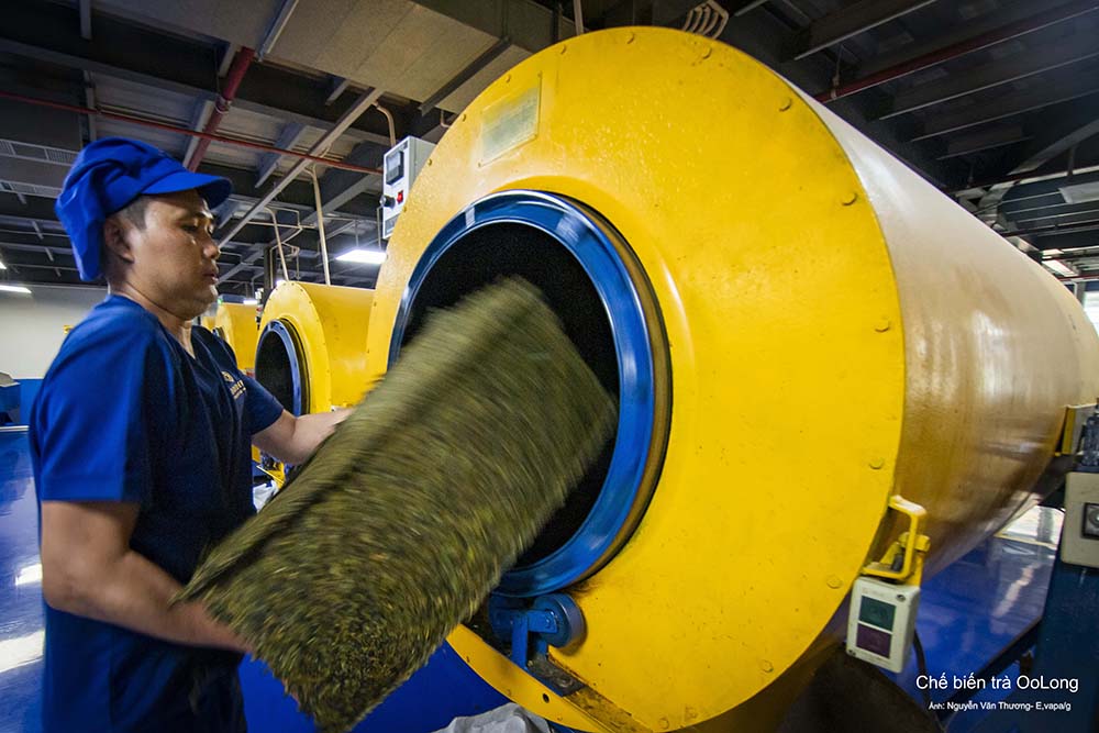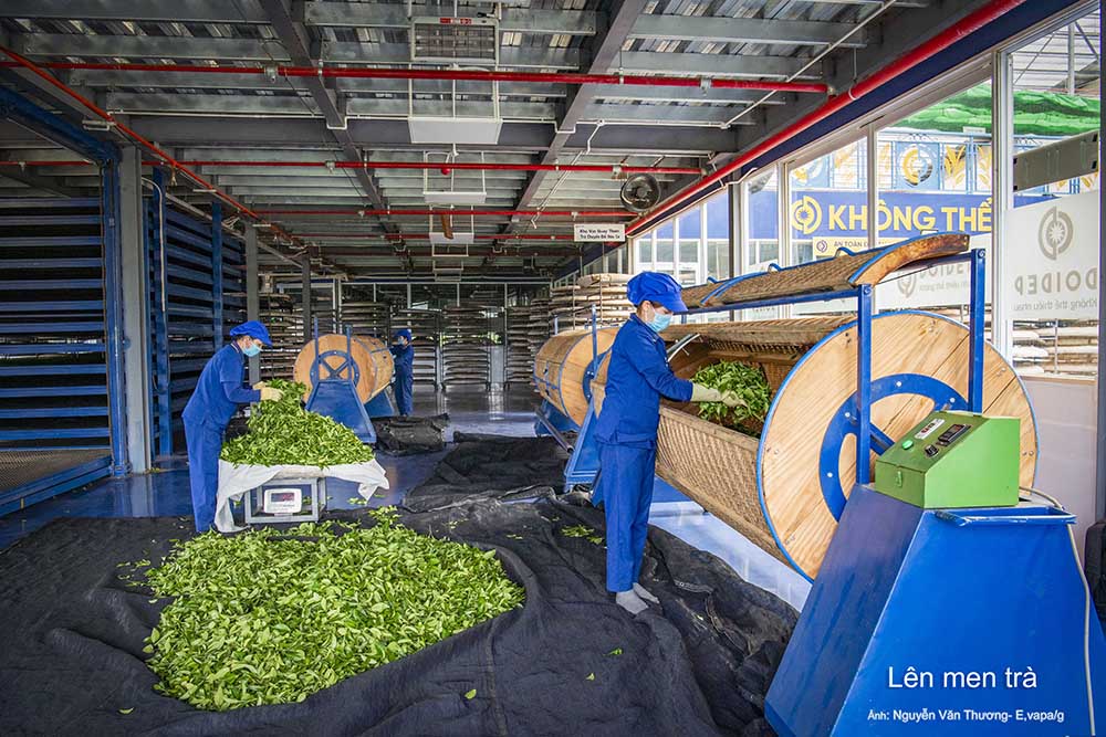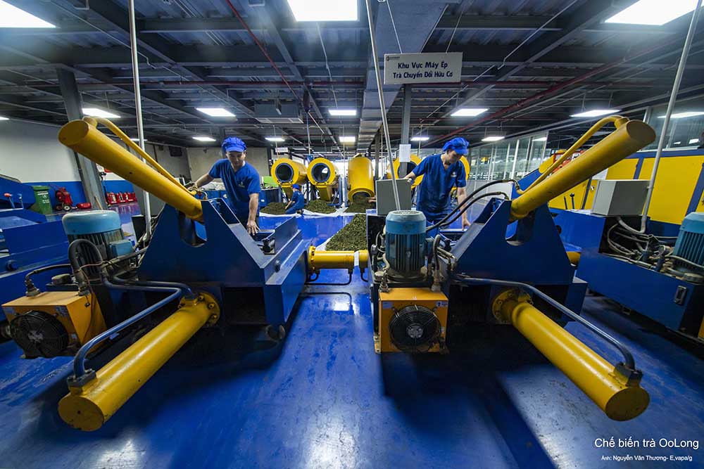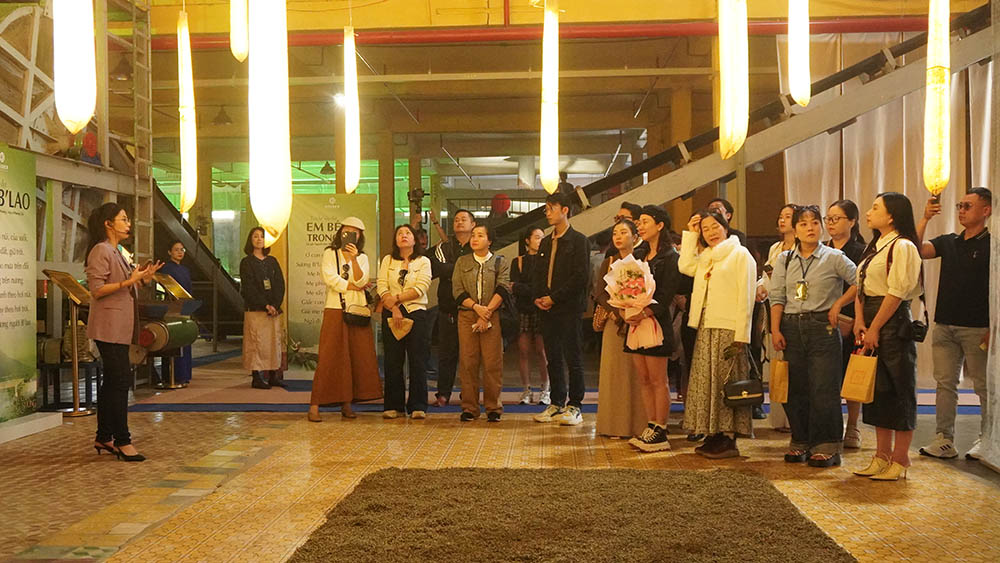 Hướng dẫn viên giới thiệu du khách thăm quan nhà máy trà cổ 1927
